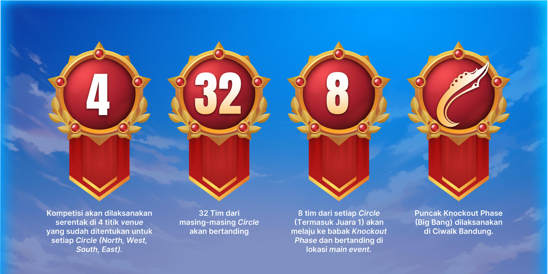 Format: Babak Kualifikasi Best of 1 (BO1).Tim pemenang EAST CIRCLE akan membawa nama zona timur langsung ke Knockout Phase. Gunakan kecepatan dan strategi terbaikmu!